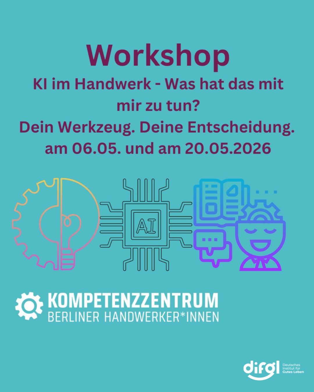 Der Workshop richtet sich an Handwerker*innen, die sich mit den Auswirkungen und Einsatzmöglichkeiten von KI in ihrem Arbeitsumfeld auseinandersetzen möchten.