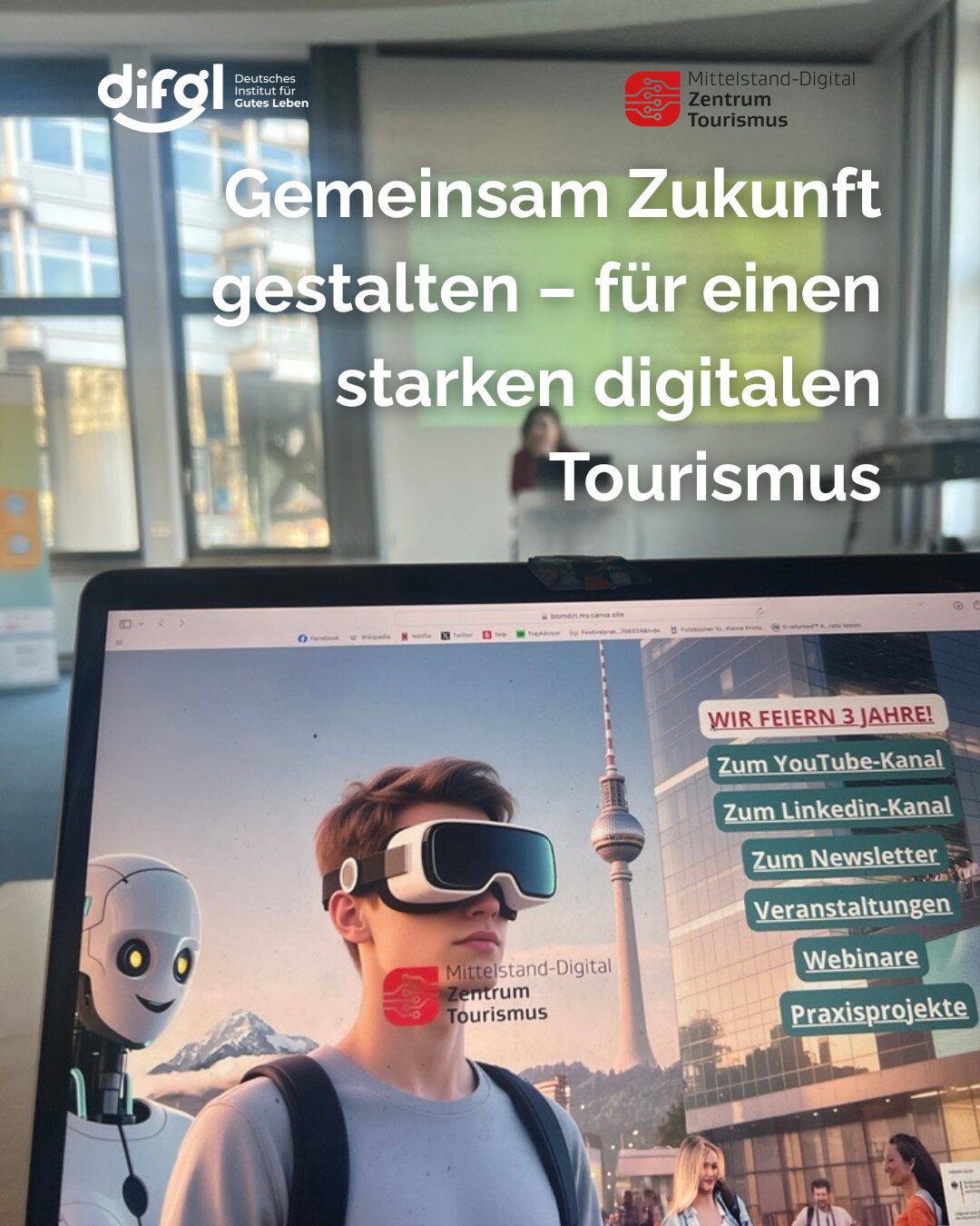 Als difgl unterstützen wir das Projekt durch Wissenschaftskommunikation und Reprtagen aus der Praxis Dadurch stärken wir kleine und mittlere touristische Unternehmen, digitale Chancen gezielt und geben Einblick in die Nutzungsmöglichkeiten moderner Technologie.